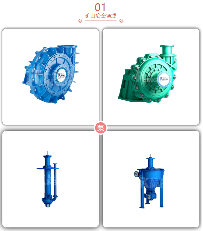 矿山冶金领域用渣浆泵主要有KMS、KSH系列重型渣浆泵、KSL系列轻型渣浆泵、KSHH、ZGB系列高扬程渣浆泵、KSS系列立式液下泵、KSF、KSHF系列泡沫渣浆泵等。、